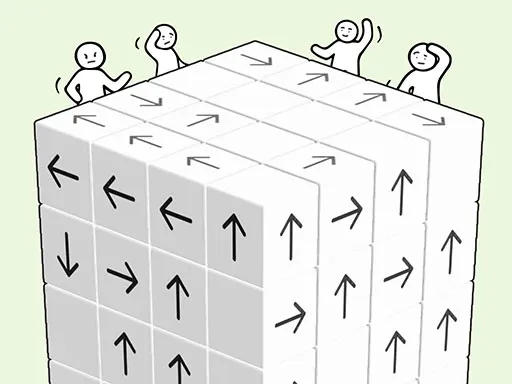 Swipe to rotate the cube and Tap the blocks to make them fly away and clear the levels. Blocks will only move in one direction, so you’ve got to approach this brain teaser carefully!